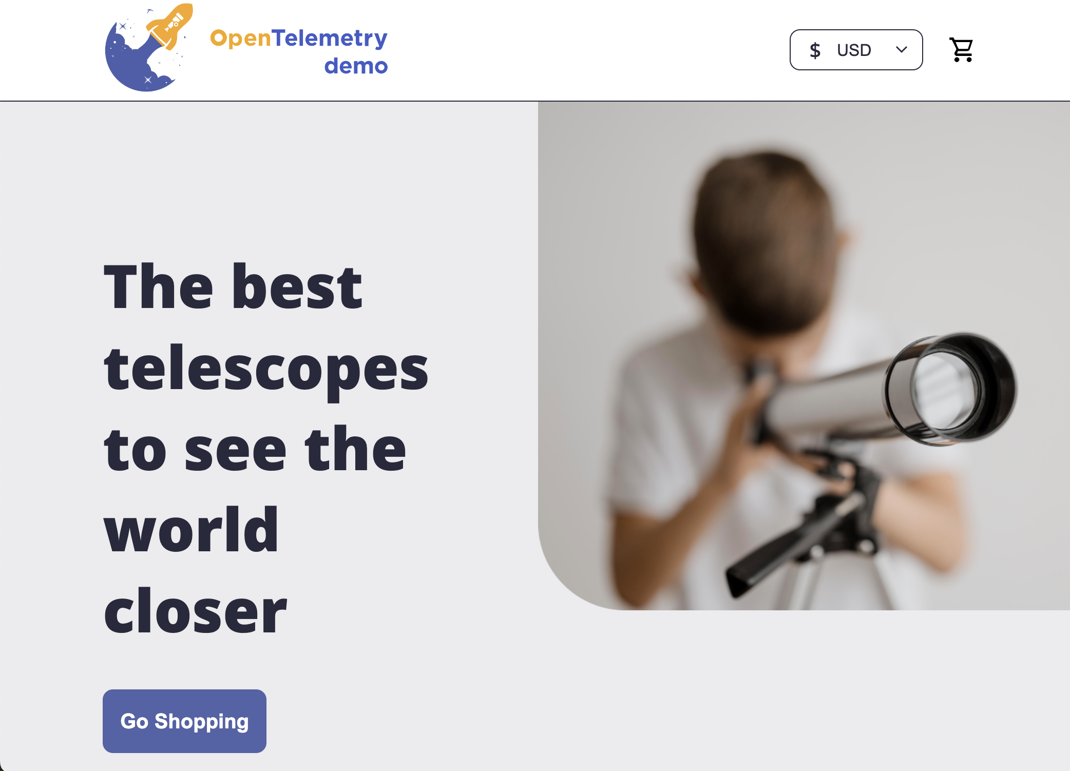 At this point all that was left was port-forwarding to the frontendproxy and firing up a browser and hit http://localhost:8080/ where I was greeted by the Demo app home page, naturally a telescope storefront 🔭