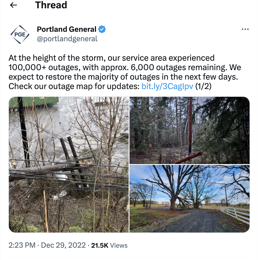 This means I've gotten the chance to become quite familiar with PGE's incident response communications and tbh....I'm impressed! Their customer comms far exceeds what I see from many tech companies, truly.