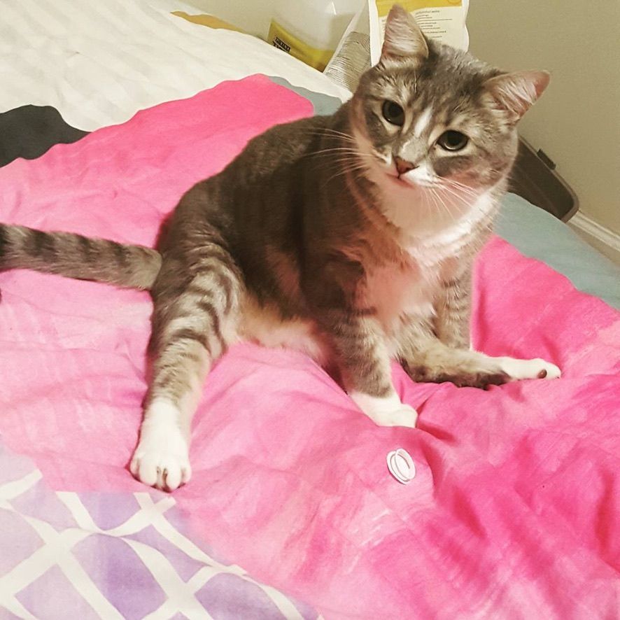 the late, great, Rocky aka Rockycat aka bae aka Rockford with his milk tab aka his favorite toy to chase up and down the halls