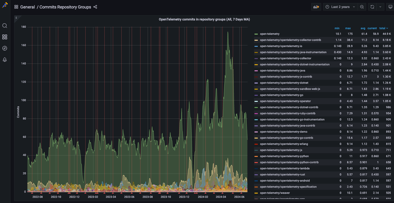 Or to discover that opentelemetry-collector-contrib is the second most committed to repo!!